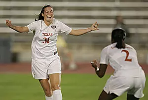 The Longhorns got on the board in the 30th minute when Amy Burlingham (Costa Mesa, Calif.) took the rebound of Kelsey Carpenter's (Euless, Texas) shot and fed it past UTEP goalkeeper Brittany Popoff for a 1-0 UT lead. Burlingham's goal was her fifth of the season and gave her nine points in the Horns' last nine games. UT then increased its lead to 2-0 in the 51st minute when Ashley Foster (Athens, Ga.) settled a Burlingham cross from the right side and slid a shot past Popoff from eight yards out. Notably, Kasey Moore (Mission Viejo, Calif.) started the play out of the backfield when she sent a long ball to Burlingham down the right flank.