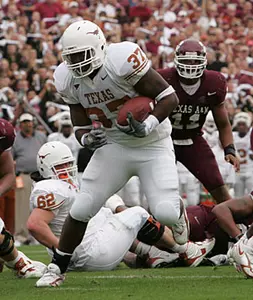 Taylor ran for 102 yards on 15 carries for Texas. His second touchdown, an 8-yard scamper through the right side in the third quarter capped a 10-play, 80-yard drive after the Aggies had taken a 22-21 lead on McGee's 11-yard touchdown run.