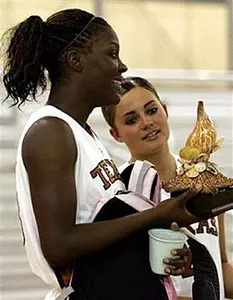 Her assessment of her performance and the play of her teammates: I was really glad to have a strong performance tonight and really help our team. Last night was frustrating for me because I got in foul trouble early. I know teams are going to double and triple-team me, and I have to make sure that I am ready for that. Tonight, we played a great team game. Everyone contributed. We had some great passing today, and really pushed the ball. We did a good job of making our free throws in the last few minutes, and we did not lose our confidence, and I want to credit Nina Norman. She did a good job scoring and hitting her free throws and she really has a presence on the floor for us. As for the freshmen, they are really learning and playing hard. I think they all gained a lot of confidence in this tournament, because we had to rely on them and they came through for us in both games.