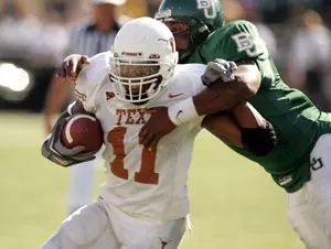 Young, the Heisman Trophy contender who is 26-2 as the Longhorns' starter, had 351 total yards in just more than three quarters -- 16-of-27 passing for 298 yards and two TDs, and 53 yards rushing on eight carries. Jamaal Charles ran for two scores for Texas (9-0, 6-0 Big 12).