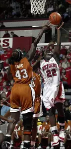 In the first half, both teams shot the ball well, with Rutgers hitting at a 56 percent clip (15-27) and Texas making 50 percent (9 of 18) of its field goals. The Scarlet Knights, however, doubled UT's efforts in rebounding, holding a 16-8 edge on the boards going into intermission.