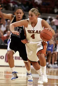 That's when the Longhorns started mishandling the ball and the Blue Devils started working it inside to take advantage of its bigger lineup. Duke outscored Texas 44-28 in the paint. Mistie Williams scored four straight points that pushed the lead to 74-65 and Texas lost Earnesia Williams when she twisted her right knee and left the game with five minutes. Texas is 4-14 against No. 1 teams.