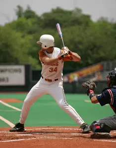 The game then settled into a pitcher's duel between starters Kyle McCulloch (Houston, Texas) for UT and Randall Taylor for Dallas Baptist as both hurlers held the respective offenses scoreless over the five innings. While McCulloch faced the minimum from the fourth through the seventh and allowed only two hits over his 7.2 innings, Taylor worked out of three jams during that span by allowing only four hits and inducing the Longhorns to strand four base runners. In the eighth, after J. Brent Cox (Bay City, Texas) relieved McCulloch and got out of a two-on, two-out situation, UT managed to place runners on the corners with two down via two walks, a passed ball and a steal. David Maroul (Benbrook, Texas) then lined a 1-1 pitch to left that the outfielder dove to make a play on, but when it dropped in front of his glove and rolled to the wall, Maroul came all the way around for an inside-the-park, three-run home run to stake Texas to a 5-2 lead. Continuing to bat in the inning, the Horns then had their next four batters reach on two singles, a triple, a double and a walk to plate four more runs with two outs and push the UT lead to 9-2. Trying to answer, the Patriots would place two runners on with one out in the top half of the ninth, but Cox fanned his next two batters to seal the win and notch his seventh victory of the season. DBU's Rodney Brantley, meanwhile, shouldered the loss in relief of Taylor, who struck out three and allowed only one earned run on seven hits over seven innings of work.