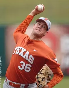 In the fourth, Texas put together a two-out rally as Johnston doubled in two runs after a pair of singles and then scored on a RBI-base hit from Carson Kainer (Tomball, Texas) to increase the Longhorns lead to 8-0. The Jayhawks would again challenge in the bottom of the fifth when center fielder Matt Baty was hit by a pitch, stole second and moved to third on a throwing error with two outs, but Boone again quelled the rally by striking out his next batter to move the game to the sixth. A leadoff single from Drew Stubbs (Atlanta, Texas) in the sixth then yielded a run for a 9-0 Texas advantage as after two outs and Stubbs now on second, Chance Wheeless (Round Rock, Texas) delivered a RBI-single to account for his team-leading 22nd two-out RBI of the year. From there, both Boone and KU reliever Sean Land kept the opposing offenses quiet as they did not allow a hit between the seventh and eighth. Then, in the bottom half of the ninth, Boone allowed only a two-out walk before completing the nine-inning effort with a groundout to first. While Boone, who allowed only three hits over the first four innings and striking out seven to come within one of matching his career high, picked up the win to improve to 6-4 on the year, Kansas starter Mike Zagurski shouldered the loss.