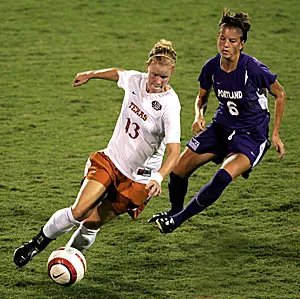 Texas and Portland battled to a scoreless first half despite 17 shots produced by the Pilots attack. UT goalkeeper Dana Hall (Kingwood, Texas) tallied six saves in the period, which was two saves shy of her individual-game career high. While Sinclair managed a period-best five shots on goal for the Pilots, the Longhorns may have had the best scoring chance early on as Carrie Schmit (La Mesa, Calif.) redirected a cross inside the six just above the crossbar.