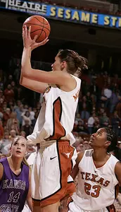The win was UT's fourth in a row, as the Longhorns (10-6 overall) move into a tie for second-place in the Big 12 standings with a 4-2 mark. KSU, which relied on a career and game-high 26 points from junior forward Claire Coggins (6-10 in 3-pointers) and 18 from freshman post JoAnn Hamlin, falls to 13-4 overall and to 3-3 in the Big 12. The win also was Texas' 30th consecutive win at home against a Big 12 opponent, which is the longest such current streak in the conference.