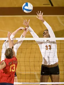 After claiming a 2-1 lead in the third frame, Texas forged ahead 8-4 on three consecutive kills by Todd, Hooker and freshman outside hitter Ashley Engle. Texas added to its lead with a 5-0 run, capped by a Paolini kill at the 18-12 mark. The Cyclones answered immediately with a 7-1 run, knotting the score at 20-20, but the Horns refused to surrender the lead. Iowa State kept the score close down the stretch, moving within one on a UT error at the 28-27 mark. Texas responded with a kill by Todd and a solo block by Hooker to close out the third and final game, 30-27. "Our players are excited about finishing the regular season against a strong opponent and I feel like it will be great preparation for the NCAA tournament," Elliott said.