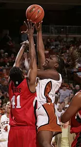 The Longhorns forced 20 Lady Raider turnovers, but UT shot just 33 percent from the floor, making 20 of 61 shots with just one 3-pointer. Texas Tech hit 41 percent of their shots (19-of-46) and went 16-for-24 in free throws. Texas turned the ball over 15 times and was just five-for-eight from the foul line. The Lady Raiders held a final 40-32 edge in rebounding.