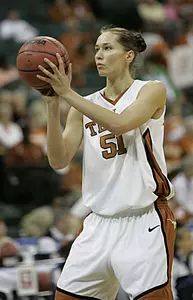 Texas led at the half, 30-28, on the strength of 10 points, eight rebounds and two blocks by Mieloszynska. Texas started the game with a hot shooting touch, hitting 10 of its first 18 shots to take a 26-16 lead with 8:57 to go.