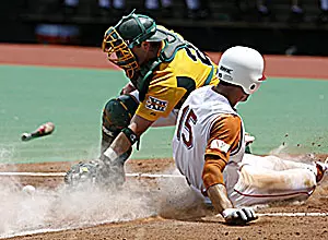 Leading the way offensively on the afternoon for Texas were Danks, who went 1-for-1 with two runs scored, a stolen base and a pair of RBI, Preston Clark (Rockwall, Texas), who tallied a pair of hits, and Fuller, who went 2-for-3 while scoring twice. Meanwhile, the Bears' attack, which out-hit the Horns by a 13-7 margin, was paced by Dillon, who went 3-for-5 with one run scored and one RBI, Kevin Sevigny, who posted three hits, and the tandem of Weems and Ben Booker, who each registered two hits on the day. Of additional note for Texas, Stubbs extended his current hit streak to five games with a 1-for-3 outing and Danks, who left the game in the seventh inning with a right ankle injury, will be evaluated prior to next week's action.