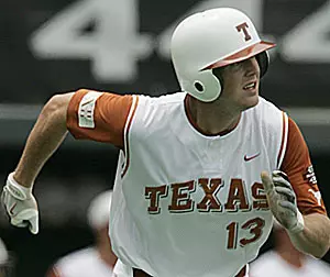 A leadoff double by Brock Simpson followed by a bloop single from Ritchie Price and a sac fly off the bat of Matt Baty staked KU to a 1-0 lead in the top of the first. Texas answered in the bottom of the frame as Carson Kainer (Tomball, Texas) doubled after two walks to drive in one run and Hunter Harris (Tulsa, Okla.) dropped a safety squeeze bunt to establish a 2-1 UT advantage. One inning later, the Horns upped their lead to 3-1 as Kyle Russell (Tomball, Texas) drew a leadoff walk, moved to second on a sacrifice, stole third and scored on a two-out wild pitch. After a scoreless third for both clubs, UT had two runners on with two outs in the fourth before Nick Peoples (Round Rock, Texas) doubled into the left-field corner to plate two runs and then scored himself on an infield error to push Texas in front 6-1. Continuing to extend the fourth inning, Drew Stubbs (Atlanta, Texas) delivered a RBI-triple in front of consecutive run-scoring doubles from Kainer, Harris and Bradley Suttle (Boerne, Texas) to make it a 10-1 game.