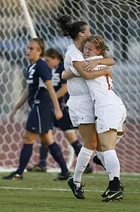 Pfenninger's kick was lofted to senior defender Karen Haight (Beaverton, Ore.) , who headed the ball to Burlingham. Burlingham carried the ball upfield and beat two Penn State defenders before sending a 10-yard shot towards goal. The shot deflected off Penn State goalkeeper Alyssa Naeher's body and into the far left corner of the nets.