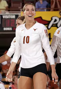 Engle anchored the Longhorns attack with her 17 kills on .469 hitting, while Christian came off the bench to post 10 kills, six digs and a .300 attack mark. Paolini, Todd and Acevedo each totaled nine kills apiece, with Acevedo also pitching in 10 digs. The game marked the first time that Acevedo has not posted double figures in kills this season.