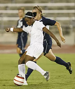 Senior captain Carrie Schmit (La Mesa, Calif.) scored first for UT, tucking the ball away in the far post off a bounce pass from senior Amy Burlingham (Costa Mesa, Calif.). Sophomore defender Kasey Moore (Mission Viejo, Calif.) served the ball into the box where Burlingham passed it back to Schmit, after a rebound, for the score.