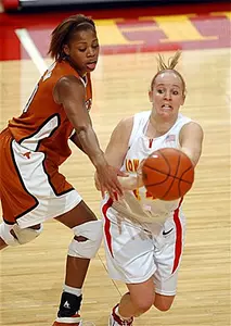 With ISU up 22-10, the Longhorns went on a run in the next 5:52, scoring 12 of the game's 17 points to cut the lead to seven, 29-22, on an Earnesia Williams' backdoor layup with 2:02 to go in the half. ISU, however, closed out the half with a 5-0 run on two free throws from Toccara Ross and a Heather Ezell 3-pointer.