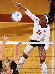 The Longhorns out-hit the Red Raiders .358-to-.034 on the night, taking advantage of a match-best .615 attack mark by Paolini who tallied nine kills in the win and added a service ace and four block assists. Senior libero Alyson Jennings steadied the Texas defense with eight digs, while sophomore Heather Kisner donned the black libero's jersey in the third game and registered five digs.
