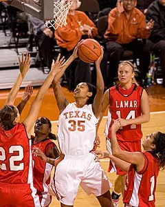 Texas took command of the game early on, jumping out to a 28-7 lead on a Raven fastbreak layup with 8:06 to play in the opening half. Raven scored 12 points and Earnesia Williams added eight in those first 12 minutes. In that opening span of 12 minutes, Lamar connected on just three of its first 22 shots and had nine turnovers.