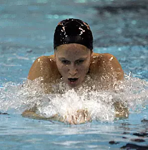 During swim meets, most student-athletes spend their time between sessions napping or relaxing in front of the TV, but not Elaine. She winds down by doing jigsaw puzzles, usually finishing two or three during a championship meet, with some help from her teammates.