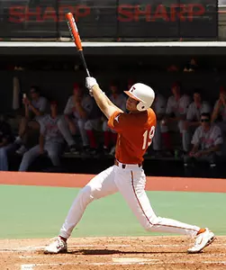 Texas (23-8) answered with two runs in the bottom half of the fifth. Travis Tucker hit a leadoff single to centerfield, moved to second on a wild pitch and scored on a double to the wall in right centerfield by Chance Wheeless. After Jordan Danks and Russell drew walks to load the bases, Moldenhauer hit a sacrifice fly to plate Wheeless with the go-ahead run giving UT a 3-2 advantage.