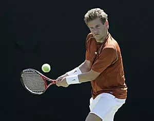 UT opened doubles play with a victory as junior Milan Mihailovic (Nis, Serbia) and sophomore Miguel Reyes Varela (Cocoyoc, Mexico) posted an 8-3 win at second doubles over Branden Joost and Jorge Villanueva. The Longhorns clinched the doubles point at the third position when juniors Luis Diaz Barriga (Cordoba, Mexico) and Bernhard Deussner (Vienna, Austria) dealt Gabriel Mattos and Bradwin Williams an 8-2 defeat. Texas completed the doubles sweep at the first slot when freshmen Josh Zavala (Amarillo, Texas) and Dimitar Kutrovsky (Sofia, Bulgaria) defeated the Razorbacks' Blake Strode and Colin Mascall, 8-5.