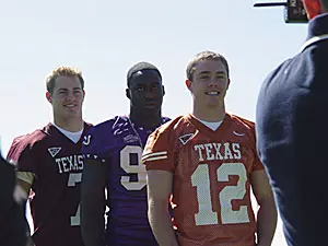Texas sophomore QB Colt McCoy is featured on the cover of the 2007 issue of Dave Campbell's Texas Football magazine. McCoy is joined by TCU's Tommy Blake and Texas A&M's Stephen McGee on a cover inspired by small-town Texas football heroes.