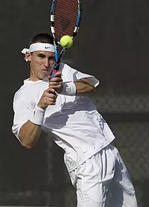 The Longhorns opened the day with a sweep of the double session. Sophomores Dimitar Kutrovsky and Josh Zavala defeated Derek DiFazio and Kevin Galloway at the third slot, 8-2, and seniors Hubert Chodkiewicz and Luis Diaz Barriga tallied an 8-3 win over Ike Belk and Kevin Fleck at the second position to clinch the doubles point. Texas finished off the doubles sweep when freshmen Ed Corrie and Kellen Damico registered an 8-4 win at the first slot over Rok Bizjak and Carlos Alvarez.