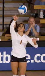 In the third stanza, Texas led early, but fell behind 13-12 on an Engle attack error. The Longhorns did not reclaim the advantage until an attack error by KU's Karina Garlington gave UT a 21-20 edge. The Jayhawks battled back to tie the set at 24, but kills by Hooker, Faucette and freshman setter Michelle Kocher helped the Horns close out frame with a 27-25 victory.
