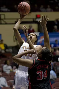 Maria Moore's 3-pointer cut the lead to 64-55 with just over six minutes left, but the Longhorns responded with a 9-0 run to put the game away. Raven, Texas' leading scorer at 15.5 points per game, scored on back-to-back fast-break lay-ups during that spurt.