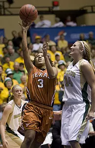 Brittainey Raven, the Longhorns leading scorer at 15.5 points per game, battled foul trouble in the first half and finished with only two points at the break.