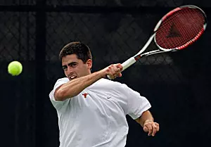 Texas opened the match by securing the doubles point. Sophomores Dimitar Kutrovsky and Josh Zavala tallied an 8-5 win at third doubles over Andrew Piotrowski and Jaak Poldma, and the Longhorns clinched the point at second doubles when junior Miguel Reyes Varela and senior Luis Diaz Barriga scored an 8-5 win over Jason McNaughton and Gary Sacks.
