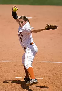 In the fifth, Texas added a single tally on a leadoff single by Cook and an RBI single by sophomore shortstop Loryn Johnson that allowed Cook to score from third. The Horns tacked on three more runs in the sixth, plating their first run on sophomore centerfielder Brittany Chalk's RBI double to centerfield that scored junior catcher Kacie Gaskin who singled to start the frame.