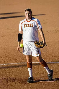 After four innings of scoreless play, Texas blew the game open in the fifth, sending 12 batters to the plate and scoring six runs. Sophomore leftfielder Kori Cook started the rally with a one-out single to rightfield, but the Horns did most of their damage with two outs. Cook stole second and advanced to third on a passed ball before coming around to score junior first baseman Desiree Williams' RBI single. Sophomore shortstop Loryn Johnson singled to move Williams to third and an intentional walk of sophomore designated player Tallie Thrasher loaded the bases.