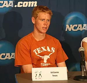 Corrie pushed the Texas lead to 2-0 with an easy 6-2, 6-2 win at third singles over the Gators' Lacroix. Reyes Varela took the first set off of Florida's Johnny Hamui at sixth singles, 6-4, and broke Hamui late in the second set to emerge with a 6-4, 7-5 win to push the Longhorns' lead to 3-0.