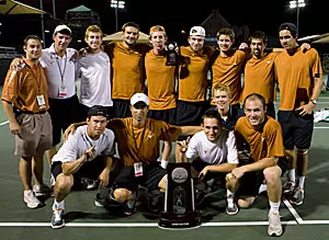 Georgia (27-3) wins its second straight NCAA team title, as the Longhorns finish the 2007-08 season -- arguably the finest in school history -- as the NCAA runner-up with a 25-6 record. Texas swept all three spots on the NCAA All-Tournament doubles teams, as the Longhorn duos of freshmen Ed Corrie and Kellen Damico, senior Luis Diaz Barriga and Reyes Varela, and sophomores Dimitar Kutrovsky and Josh Zavala took all-tournament honors. Reyes Varela also made the NCAA All-Tournament Team at No. 6 singles.