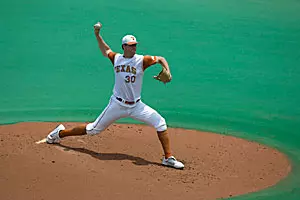 The Longhorns manufactured a run in the third. Travis Tucker was hit by a pitch, moved to second on a sacrifice bunt by Jordan Danks and scored on a double down the rightfield line by Moldenhauer to inflate the cushion to 2-0.