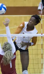 Hooker highlighted the Longhorns' offense on the night, recording 18 kills on .429 hitting and chipping six digs and two service aces. Faucette added nine kills and seven digs, while Adams notched seven kills, five blocks and hit .667.