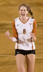 Hooker paced the Texas attack with a match-high 17 kills on .400 hitting, while Doris notched eight kills on 11 error-free swings and equaled a career-best with a .727 attack mark. Engle and junior All-America outside hitter Juliann Faucette each tallied six kills, with Engle adding 17 assists, nine digs and four blocks.