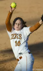 Barnhill (13-6) toed the rubber for the Longhorns, tossing a complete game two-hit shutout, fanning four and walking none. Barnhill threw 4.1 innings of perfect softball before surrendering her first hit and only allowed two balls to be hit out of the infield on the night. Texas Tech starter Ashley Jacobs (7-14) suffered the loss after throwing just 1.2 innings, surrendering six runs on three hits and walking six.