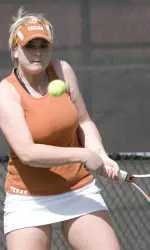 Baylor opened the match by winning a tight doubles session to take a 1-0 lead. Texas' Stephanie Davison and Caroline Larsson held a 5-3 lead over Nina Secerbegovic and Kasia Siwosz, but the Bears rallied to claim the remaining five games and earned an 8-5 win. UT sophomore Amanda Craddock and Krista Damico trailed Baylor's Taylor Ormond and Jelena Stanivuk by a 7-3 count at second doubles before rallying and pulling within 7-6.