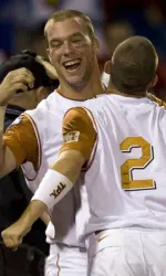 Tucker had three hits and scored twice for the Longhorns, while Loy and Belt each had two hits and two RBI. But the heroes were Rupp and Jungmann. Rupp drew two walks in addition to his two homers and four RBI, while Jungmann allowed only two hits and struck out six out of the bullpen.