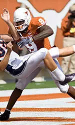 Sergio Kindle sacked Vittatoe on the fifth play of the game, causing a fumble that set up a 3-yard run by Tre' Newton. Kindle's hit was the first of four Texas sacks.