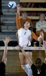 The Longhorns came out on fire in the third and stayed hot for the duration with Roberson connecting for four quick kills to give UT a 6-1 lead. Texas blew the set open quickly, using a 17-1 run fueled by five kills, four solo blocks and one block assist from senior All-America outside hitter Juliann Faucette to end the set, 25-5.