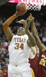 KANSAS CITY, Mo. (AP) -- Damion James had 28 points and 16 rebounds, and Texas pulled away from plucky Iowa State on Wednesday night, beating the Cyclones 82-75 in a hard-fought Big 12 opening-round game.