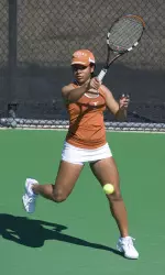 OU got on the board with a win at fourth singles, but Texas would close out the match with victories at the sixth and first singles positions. Texas junior Maggie Mello outlasted OU's Eckel at sixth singles, 6-4, 3-6, 6-1, and UT's 28th-ranked Ellis topped OU's Constantinescu, the 2009 Big 12 Conference Player of the Year, 6-4, 5-7, 6-3. Texas heads out of conference on Saturday, April 4 when it hosts No. 4 Northwestern. First serve is set for 2 p.m. Central at UT's Penick-Allison Tennis Center.