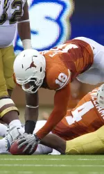 UCLA sacked QB Garrett Gilbert for Texas' first turnover. Gilbert finished with 264 yards on 30-of-45 passing with a late touchdown to James Kirkendoll.