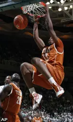 Texas used a 20-6 run over about 9 minutes to pull away to a 38-22 halftime lead. The Longhorns pounded the ball inside consistently, giving Hamilton and Gary Johnson easy baskets. Texas got 22 points in the paint in the first half and the team hit 14 of 27 shots (52 percent).