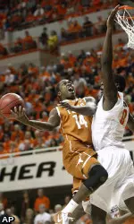 Jordan Hamilton added 12 points and 11 rebounds for Texas, which held its first four Big 12 opponents to 55.2 points per game. The Longhorns did even better while limiting the Cowboys (14-6, 2-4) to their lowest scoring output of the season on 32 percent shooting.
