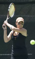 Texas came out aggressively in the doubles session and put away the Aggies in all three matches. At first doubles, UT's Amanda Craddock and Cierra Gaytan-Leach broke the serve of Texas A&M's Janelle Cuthbertson and Christi Liles to assume a 2-1 lead, and the Horns never looked back. Texas broke once more for a 5-2 lead before finishing off the Aggies, 8-4.