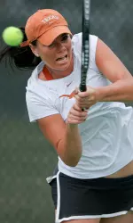 The Longhorns jumped out to a 1-0 lead after winning two of three doubles matches. Juliana Gajic and Maggie Mello opened with an 8-2 win over Kristina Barber and Abbie Probert at third doubles, and after Colorado closed out a win at first doubles, UT's Krista Damico and Aeriel Ellis clinched the doubles point with an 8-3 win over CU's Carla Manzi-Tenorio and Winde Janssens at second doubles.