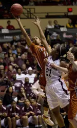 KANSAS CITY, Mo. - Chelsea Bass led the Texas Longhorns with 11 points, but Texas A&M defeated UT, 77-50, on Wednesday night in the Big 12 Women's Basketball Championship quarterfinals at Municipal Auditorium.